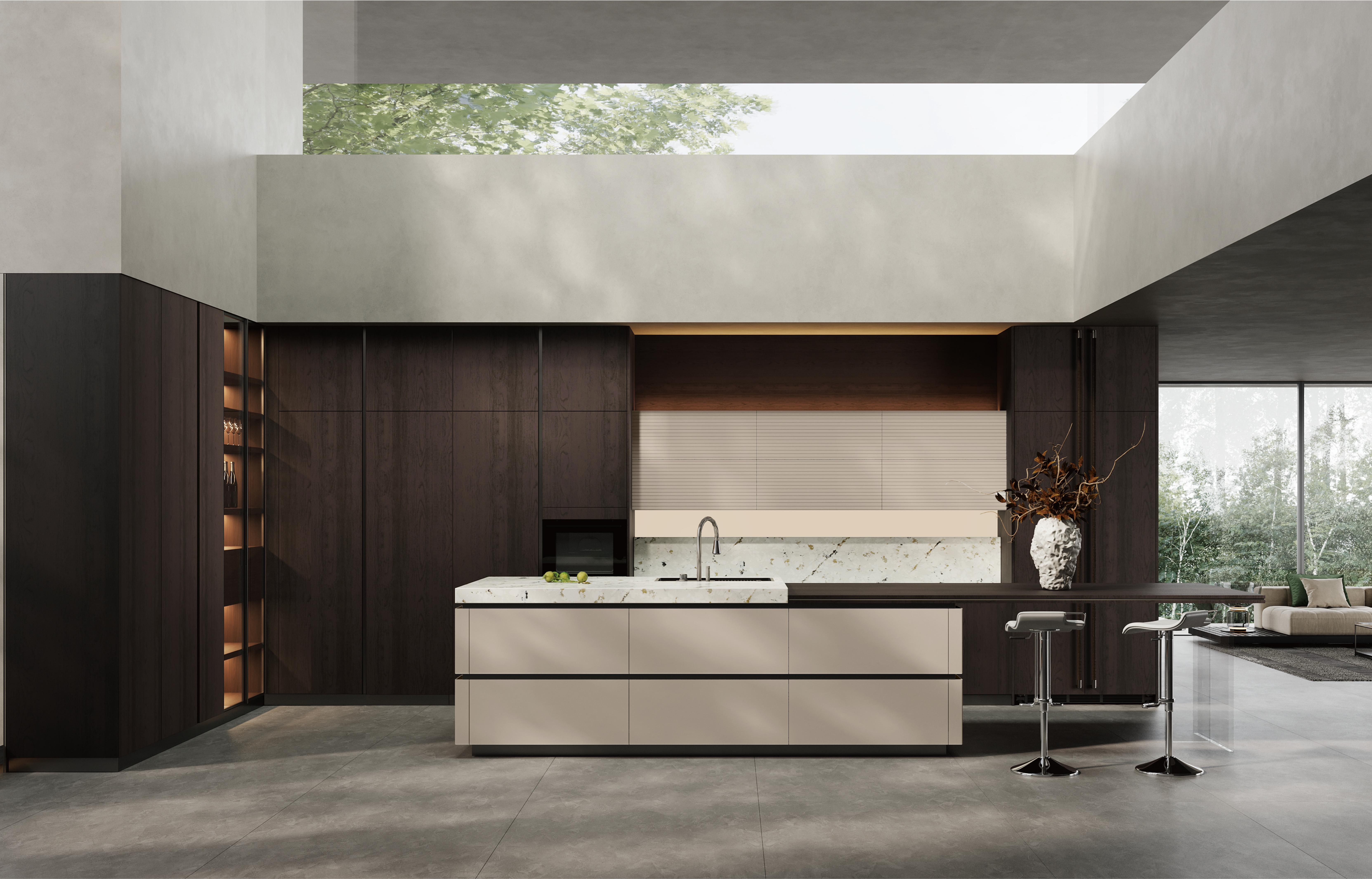 通过1xBET厨柜量体裁柜,定制出适合主厨下厨的烹饪区和洗涤区的舒适高度。